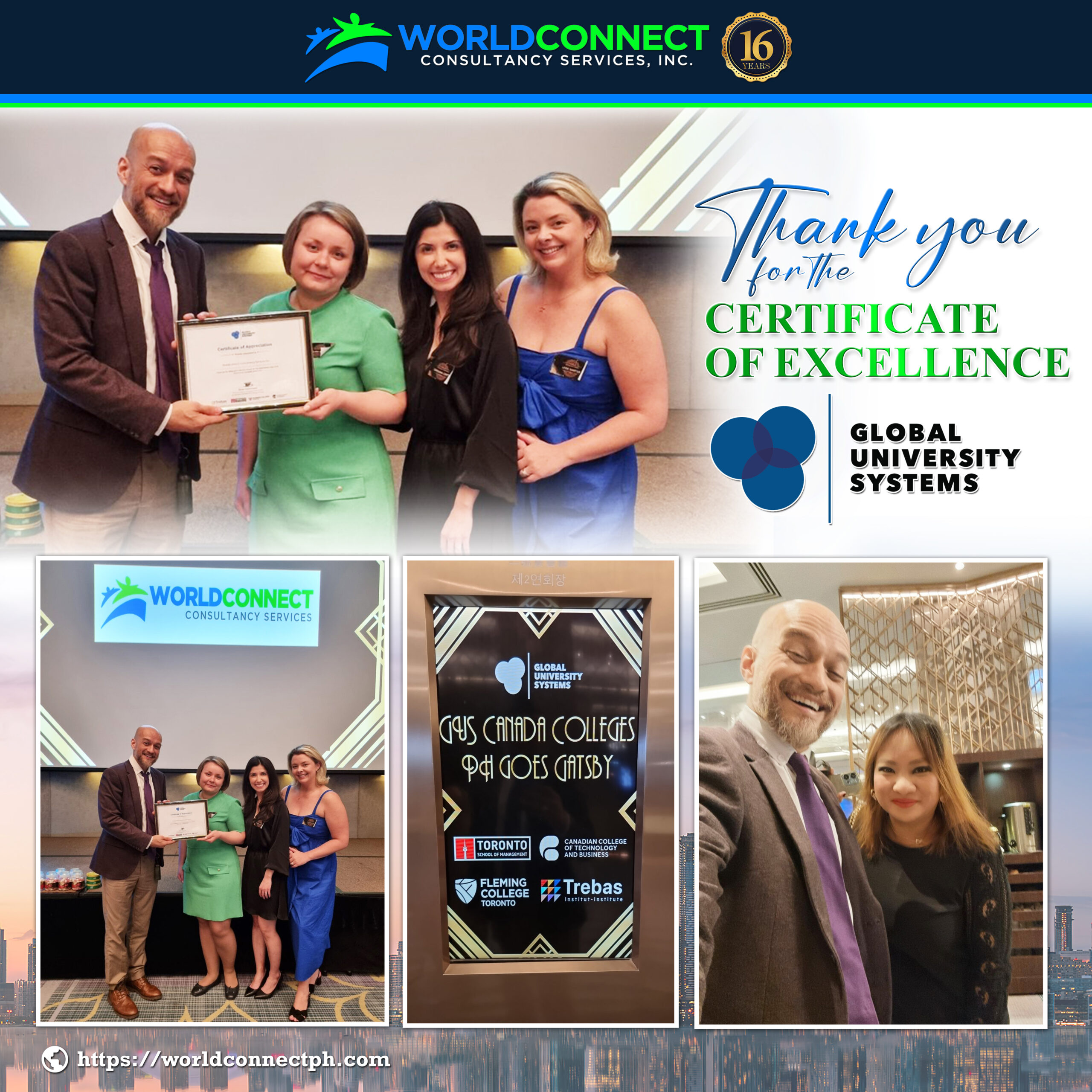 WorldConnect Consultancy Receives Certificate of Excellence Award From Global University System April 22, 2023 – WorldConnect Consultancy Receives Certificate of Excellence Award From Global University System